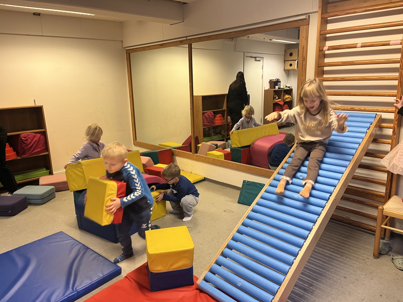 Der åbnes for stuerne, hvor der er leg på tværs af børnehavegrupperne.